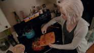 The zombies continue dropping through the ceiling, and Liv uses up her last round. She warns Clive that they don't have enough time to argue, but he refuses. Vivian arrives and guns down the zombies, and then introduces herself. The trio introduces themselves, and Vivian explains that she's the new owner. Liv says that they're heading down, claiming that there are more survivors. Vivian sees the severed hand and gives them more guns, and says that she's heading for the surface.
